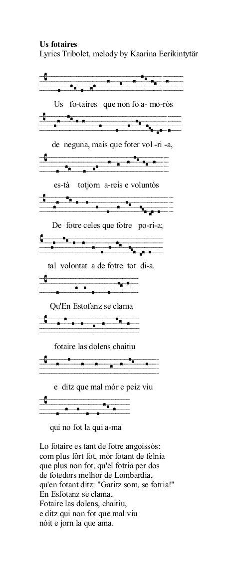 - Us fotaires (lyrics Tribolet, melody Taija Paju)